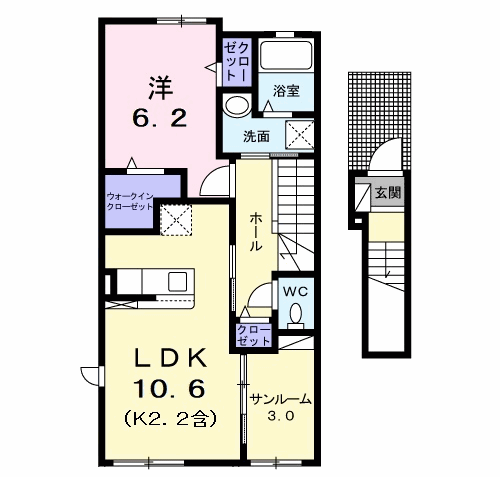 | 間取内容 | 2階LDK10.6畳1室 2階洋室6.2畳1室 2階その他3.0畳1室 +サンルーム |